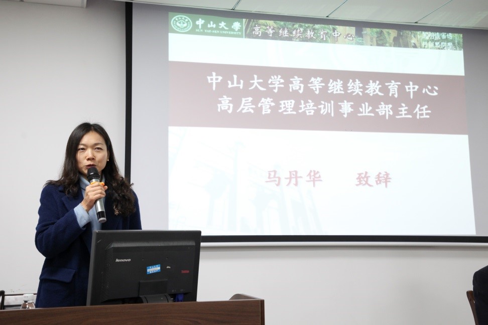 2月26日,乌海电业局管理人员素质能力提升培训班(第一期)在中山大学南校园顺利开班。在开学典礼中,中山大学高等继续教育中心高层管理培训事业部主任马丹华为开学典礼致辞,她对学员们的到来表示热烈地欢迎,并向大家介绍中山大学的发展历程,最后她用中山大学十字校训“博学、审问、慎思、明辨、笃行”寄予希望学员们学以致用,知行合一。