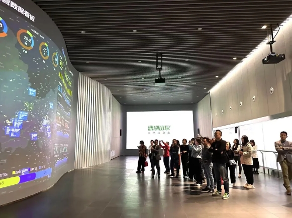 校友们首先参观鼎湖山泉展厅,步入一个关于水的“梦幻世界”,了解这里所展示的清澈山泉、先进制水工艺以及企业辉煌发展历程,深刻感受到了吴木生会长对于品质的极致追求与对自然的深切敬畏。