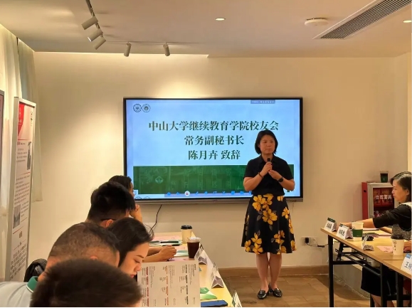 会上,陈月卉老师、陈桃秀秘书长、张晶晶老师依次介绍各自代表组织的组织架构、会员构成以及近年来的主要活动,并着重分享校友会在促进校友间交流合作、增强校友凝聚力方面的有效举措与显著成效。会议尾声,大家自由交流,彼此学习,陈桃秀秘书长做代表向中山大学继续教育学院校友会企业家联合会秘书处赠送纪念品。